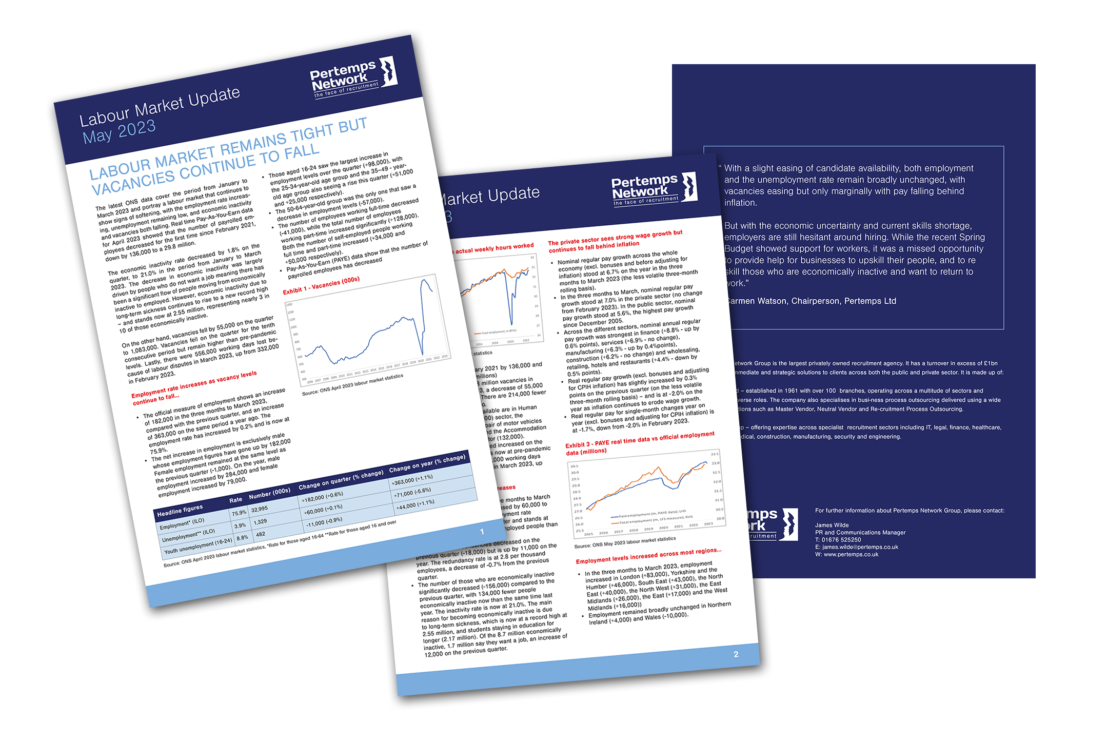The latest ONS data cover the period from January to March 2023 and portray a labour market that continues to show signs of softening,